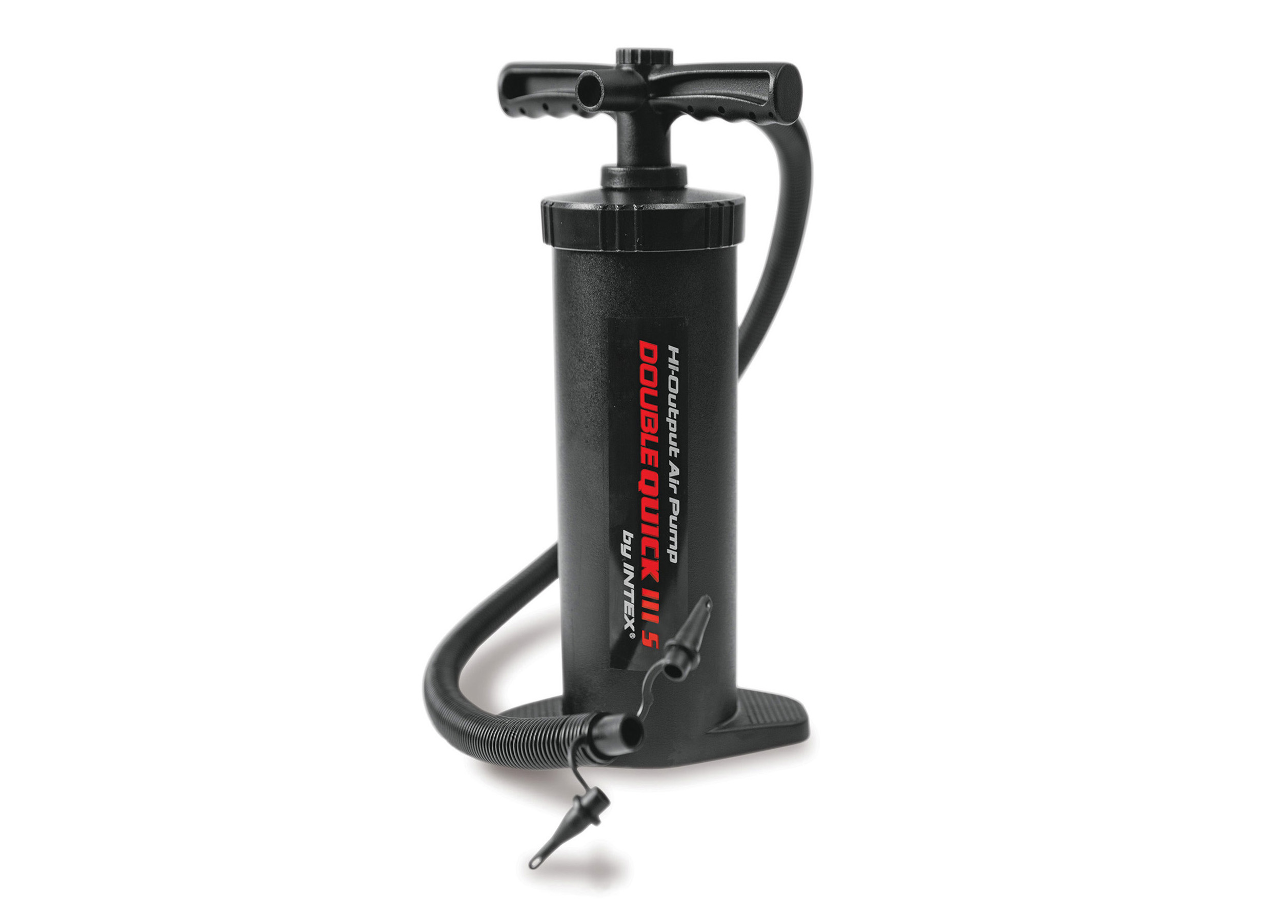 Ruční dvoučinná pumpa se třemi nádstavci. Možno použít pro nafukování i vyfukování. Dvoupístová technologie. Barva černá. rozměr pumpy: 37 cm