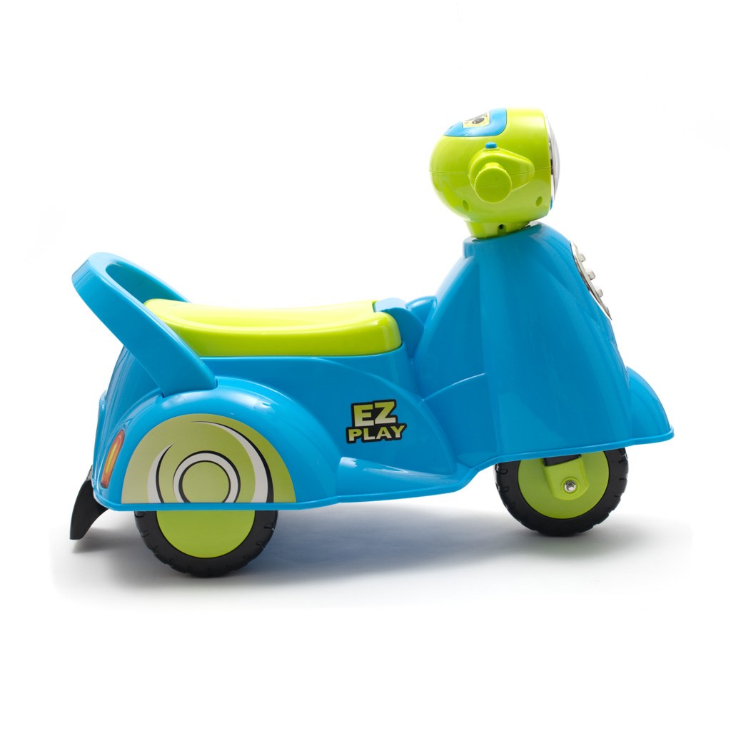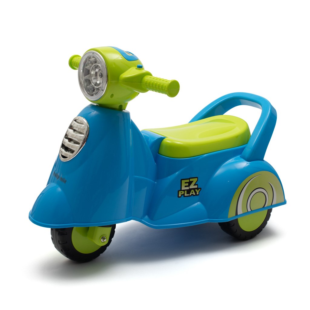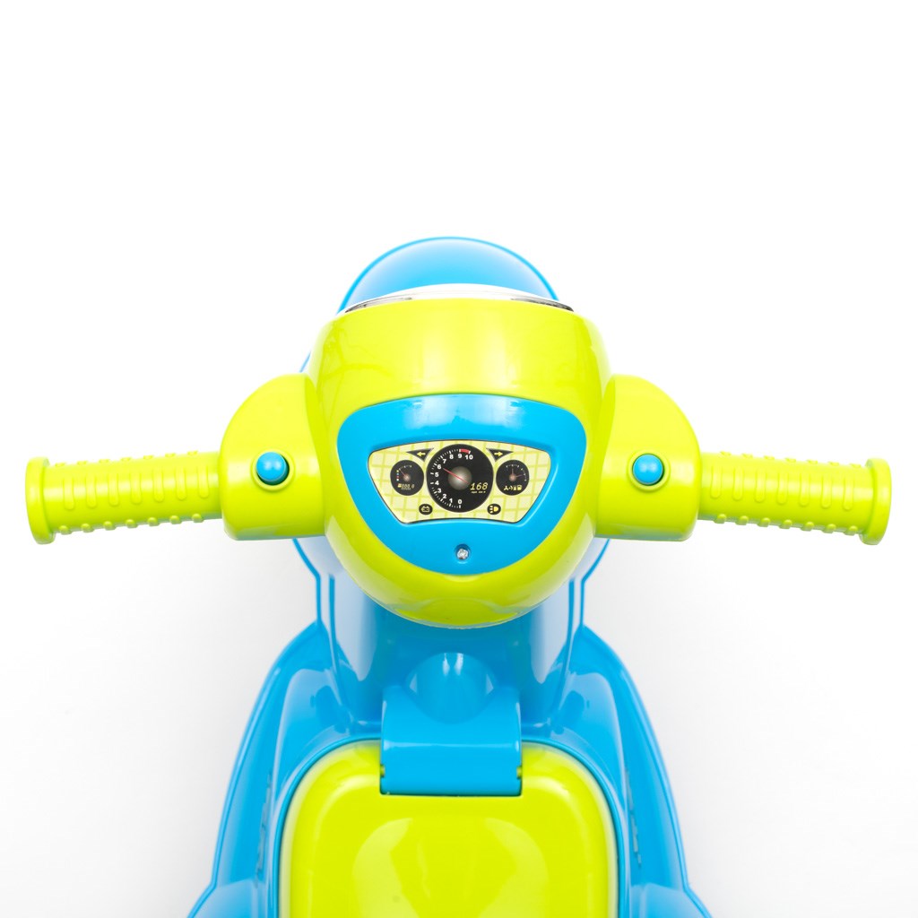 Dětská motorka Baby Mix ve tvaru skútru. Motorka má na řídítkách tlačítko, po jeho zapnutí hraje melodie, rozsvítí a rozblikají se světla. Po zmáčknutí druhého tlačítka se ozve klakson. Je vyrobené z kvalitního plastového materiálu. Je to skvělá a bezpečná hračka. Pomáhá rozvíjet motorické schopnosti dítěte v době, kdy se učí chodit. Zaoblené hrany a pevná kola zajišťují bezpečnost při hraní. Jezdítko je určeno jak pro nejmenší děti, které umí sedět, tak i pro děti, které se už naučily chodit. V balení jsou nálepky, kterými můžete jezdítko vyzdobit. Baterie nejsou součástí balení.