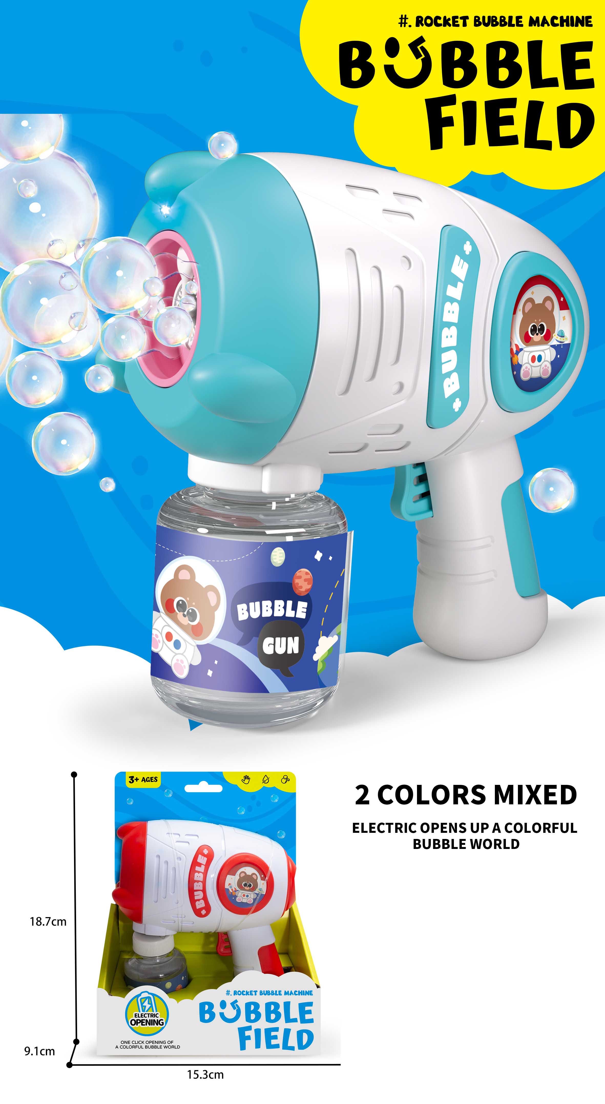 Bublifuk pistole. Objem 80 ml. Světelné efekty. 4xAA baterie nejsou součástí. 2 varianty - modrá, červená.