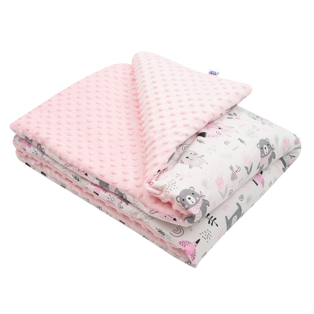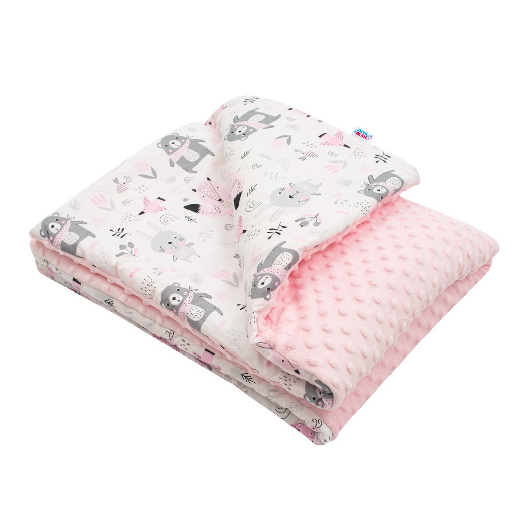 Dětská deka New Baby je vyrobena ze dvou typů tkanin. První je velmi měkká a na dotek příjemná, hebká Minky látka s výstupky pro stimulaci senzomotoriky a druhá je 100% bavlna s originálními obrázky a vzory, které pomáhají dětem učit se nové věci a rozvíjet jejich fantazii. Je ideální jak pro miminka od narození, tak pro větší děti. Deku můžete používat jak doma, tak venku, v kočárku, postýlce, autosedačce či jako hrací deku. Je vyrobena z velmi kvalitního materiálu, který nepouští barvu a nevyvolává alergické reakce.