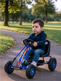 Velké nafukovací pneumatiky zajistí komfort a pohodlí při jízdě na jakémkoli povrchu. Motokára má zabudovaný řetězový pohon s možností odpojení pohonu - funkce volnoběžky a ruční brzdu na zadní nápravě.