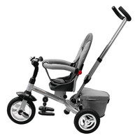 Dětská šlapací tříkolka Baby Mix TYPHOON je multifunkční dopravní prostředek a je typickým příkladem produktů GROW UP - roste zároveň s dítětem. Tříkolku může ovládat jak dítě, tak i rodič pomocí nastavitelné vodící tyče. Po odebrání vodící tyče, sklápěcí stříšky a opěrek bude sloužit jako klasická šlapací tříkolka. Pevná ocelová konstrukce zajistí dítěti bezpečnost a zaručí její používání po mnoho let. Pohodlné a ergonomicky tvarované sedadlo je otočné o 360 stupňů, což umožní dítěti cestovat ve směru nebo proti směru jízdy. O pohodlí a bezpečí během jízdy se stará odnímatelná hrazda, tříbodové bezpečnostní pásy, pohodlné odnímatelné stupačky nebo gumová kola, která skvěle absorbují nerovnosti, poskytují perfektní přilnavost a nevyžadují huštění. Pro uložení hraček nebo potřeb pro dítě je zde praktický úložný košík.