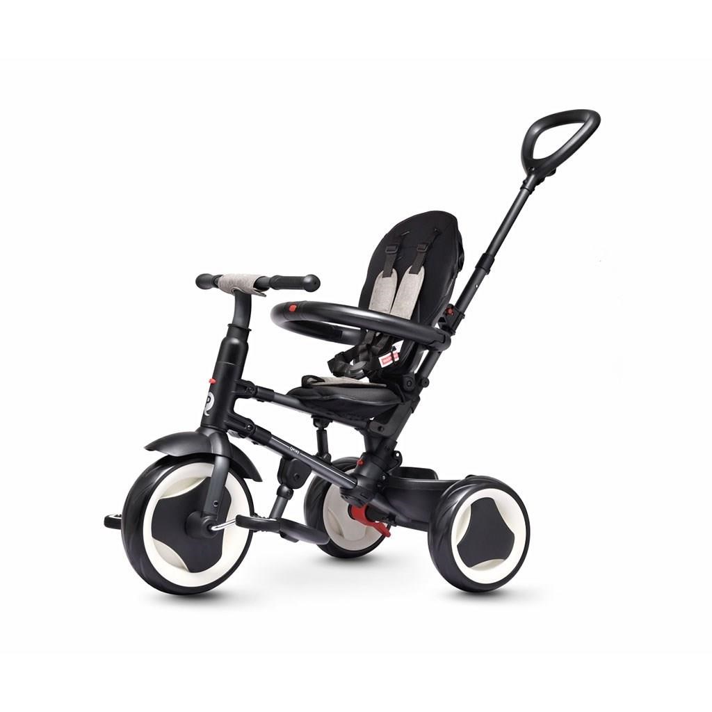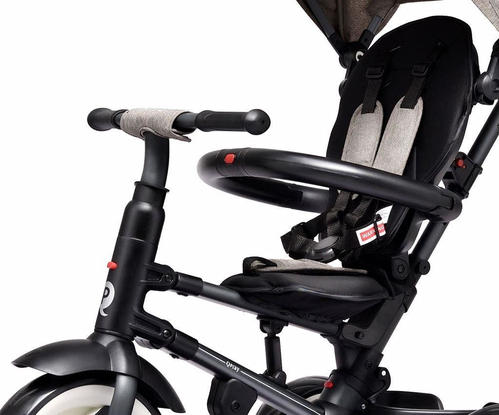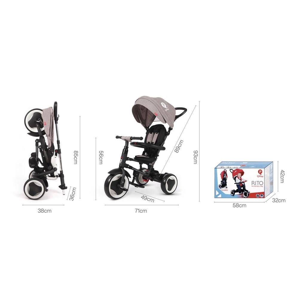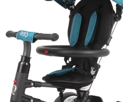 RITO je stabilní a bezpečná, má moderní design a pohodlné tvarované sedadlo. Tříkolka je vybavena bezpečnostní hrazdičkou, která zabraňuje pádu dítěte, pětibodovými bezpečnostními pásy, opěrkou nohou a pěnová kola zajišťují tichou a pohodlnou jízdu. Po sejmutí vodící tyče, hrazdičky, stříšky a potahu sedadla bude RITO sloužit jako tříkolka. Díky funkci "volné kolo a řídítka" může dítě volně šlapat a zatáčet, zatímco rukojeť pro rodiče může stále korigovat rychlost a směr pohybu.