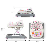Výrobek má výukový panel, který obsahuje řadu překvapení čekajících na malé průzkumníky: světýlka, pískání, melodie, chrastítko, tlačítka a další pohyblivé prvky. Po sejmutí panelu z podnosu chodítka poslouží jako samostatná hračka, například jako společník na cesty, a deska poslouží jako hrací stolek.