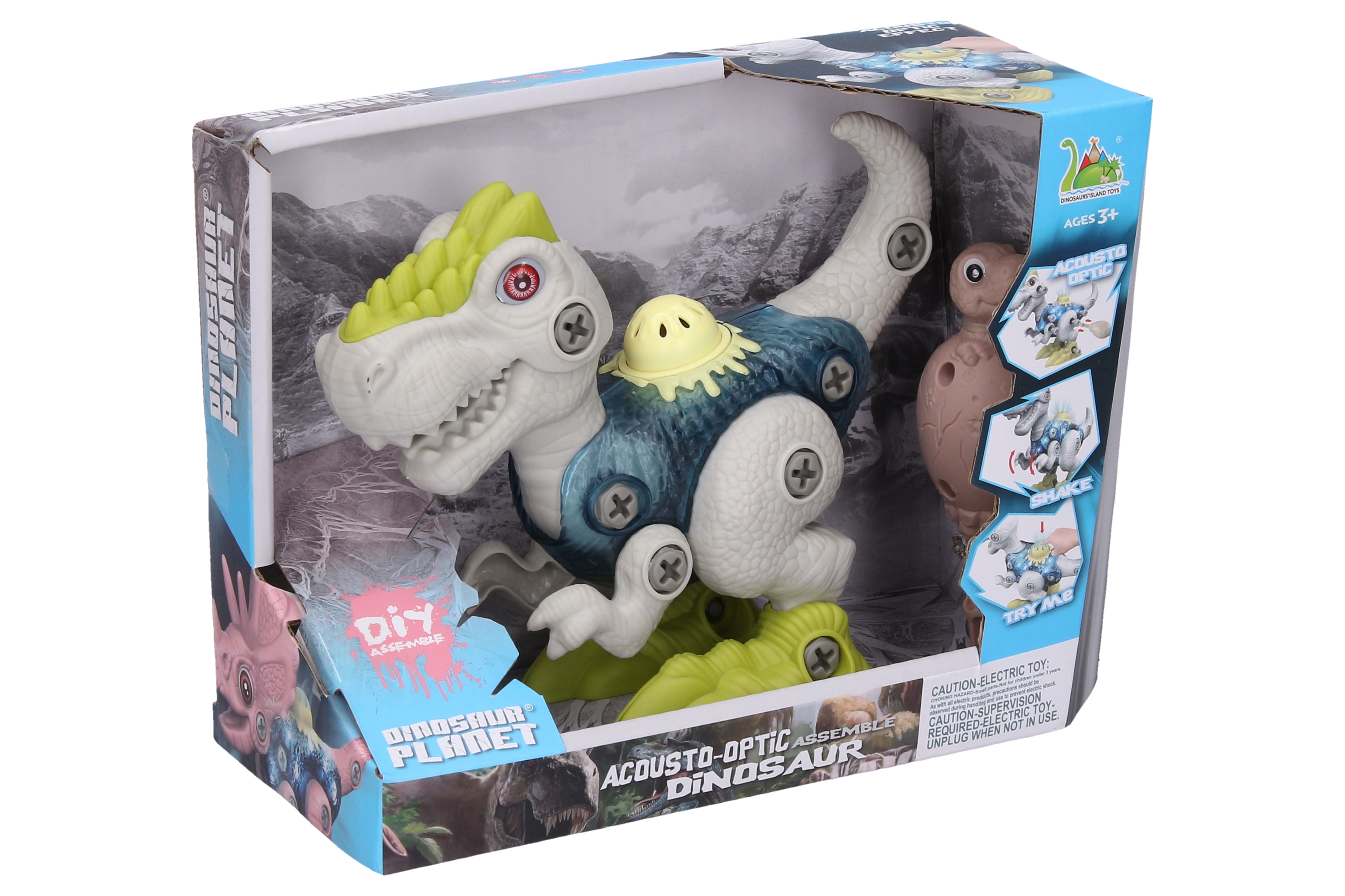 Dino šroubovací. Velikost 17 cm. Po zmáčknutí tlačítka na zádech vydává světelné a zvukové efekty. Balení obsahuje dinosaura a šroubovák. 2xAG13/LR44 baterie součástí balení.