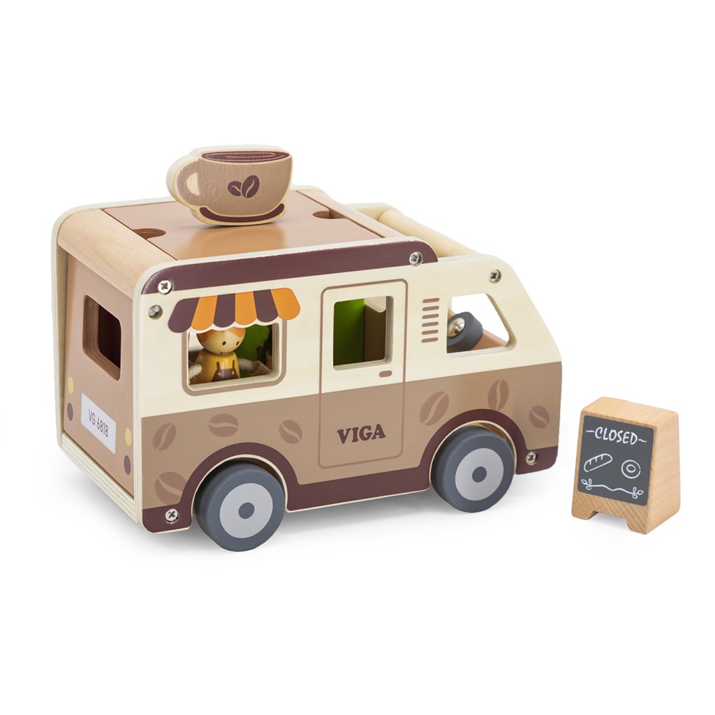 Pevná dřevěná konstrukce a jemné pastelové barvy nanesené netoxickými barvami činí hračku nejen esteticky příjemnou, ale i bezpečnou pro nejmenší. Sada je navržena s ohledem na rozvoj představivosti, manuálních dovedností a sociálních schopností dětí a nabízí mnoho hodin kreativní zábavy. Perfektní pro děti, které milují dobrodružství a sní o vlastní mobilní kavárně na kolech.