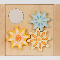 5 různých motorických aktivit v jedné hračce – labyrint s korálky, převlékací tvary, ozubená kolečka, zábavné kostky se zvířátky, zrcátko, posouvací prvky.