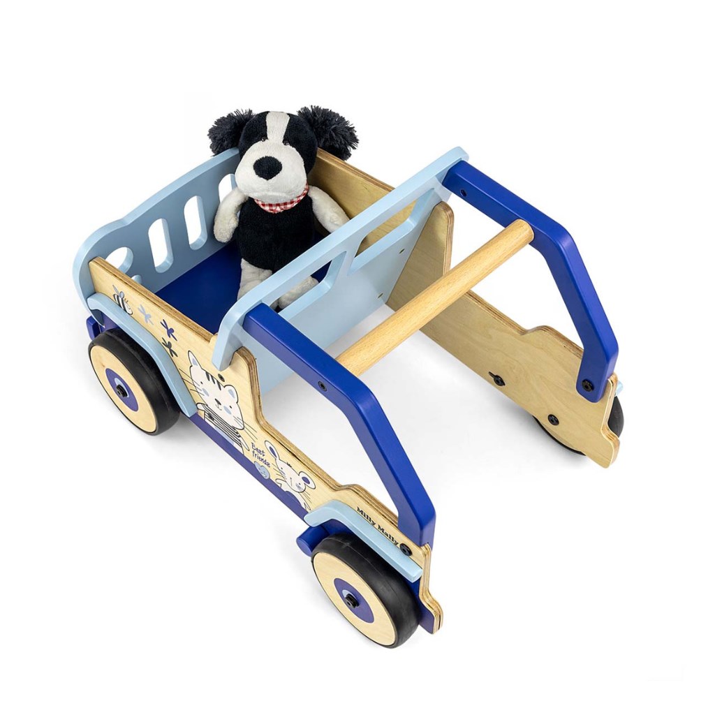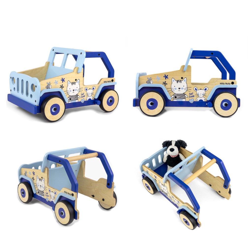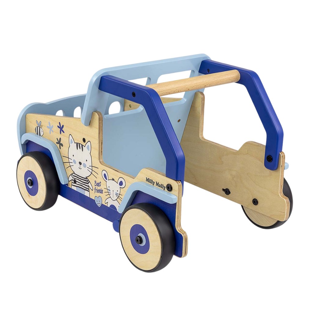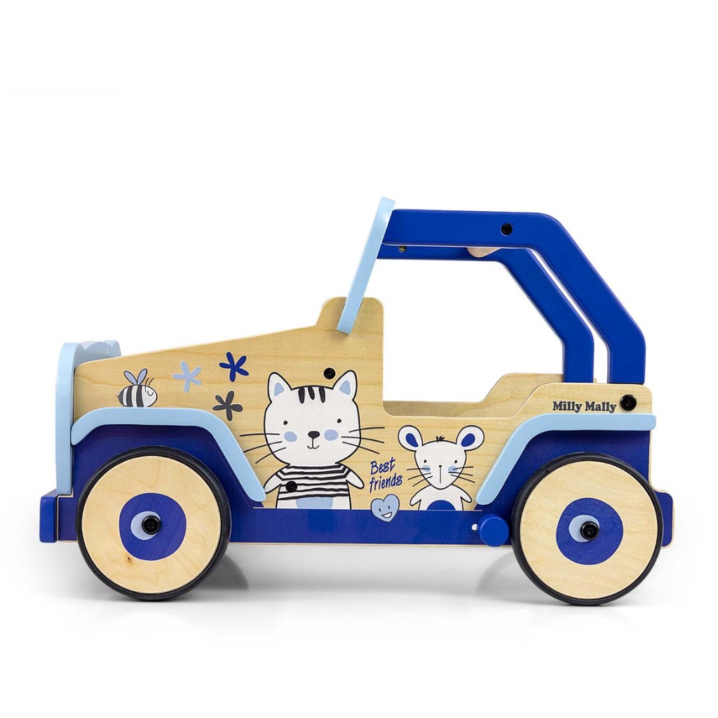 Toto dětské chodítko, inspirované legendárními terénními auty, je vyrobeno z vysoce kvalitního dřeva a ekologických materiálů. Kryty kol jsou vyrobeny z měkkého TPR plastu, který je flexibilní a odolný a umožňuje použití na všech površích bez poškození nebo poškrábání. Neobsahují změkčovadla a jsou šetrné k životnímu prostředí.