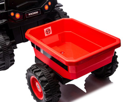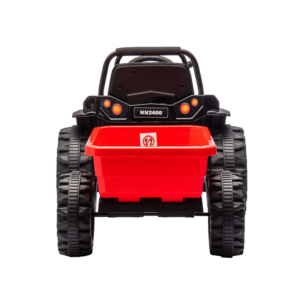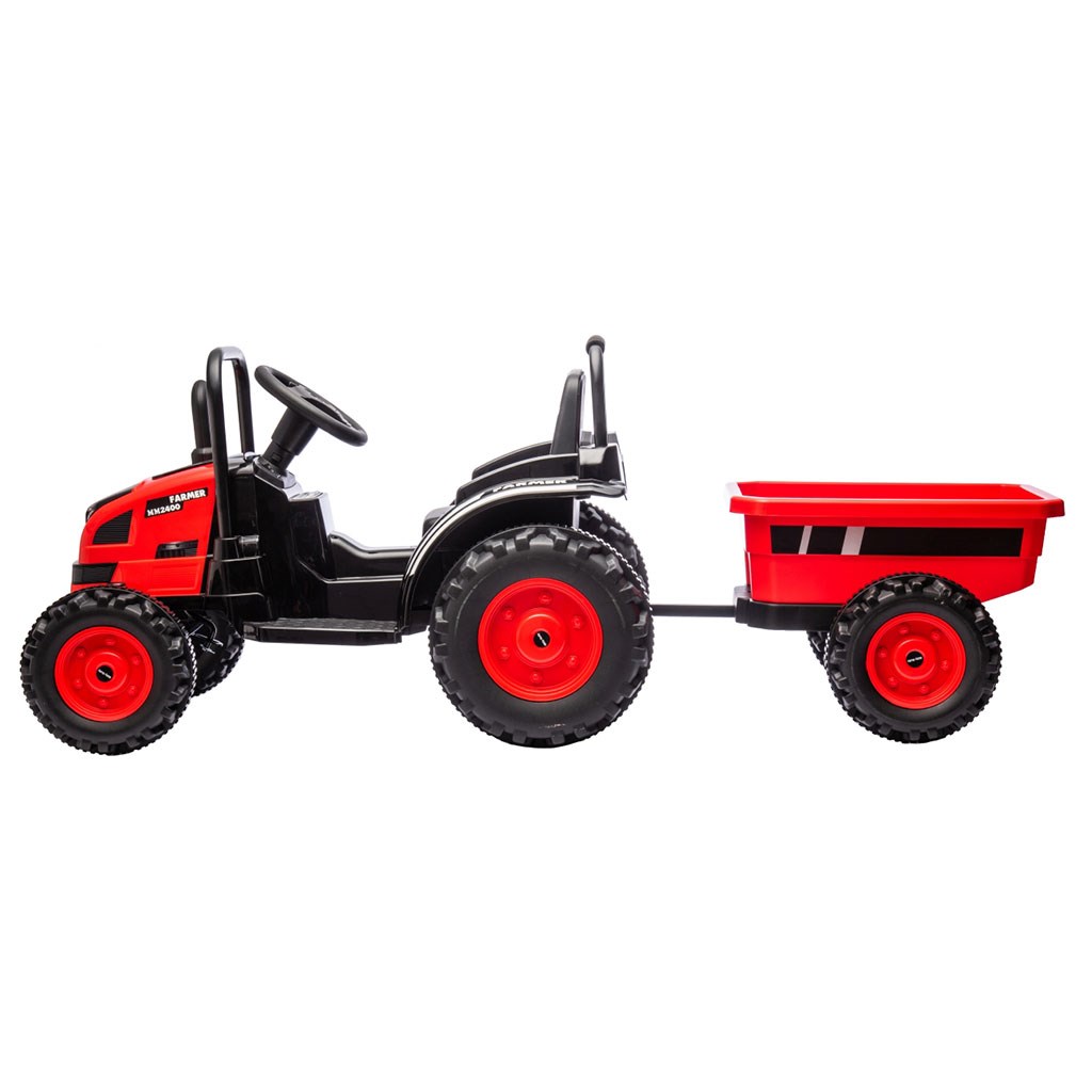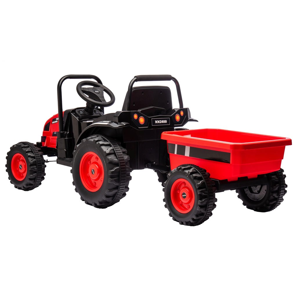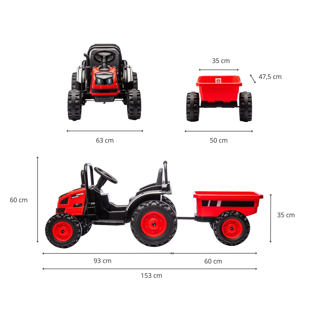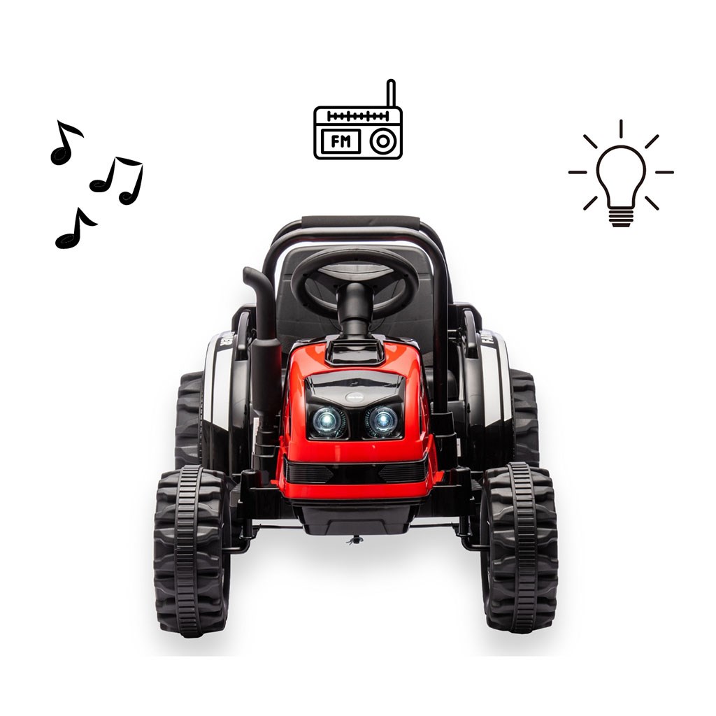 Jedná se o ideální vozidlo pro děti ve věku od 3 do 5 let. Traktor je dodáván s přívěsem pro další zábavu. Kovové bezpečnostní tyče vpředu a vzadu a imitace komína / výfuku, vrčivý zvuk motoru traktoru, to vše umožňuje malým řidičům popustit uzdu své fantazii a cítit se jako skuteční traktoristé. Vypínač aktivuje realistický vrčivý zvuk motoru traktoru, zatímco tlačítko současně vypíná vozidlo. Dva motory umístěné v traktoru dosahují průměrné rychlosti 3-5 km/h.
