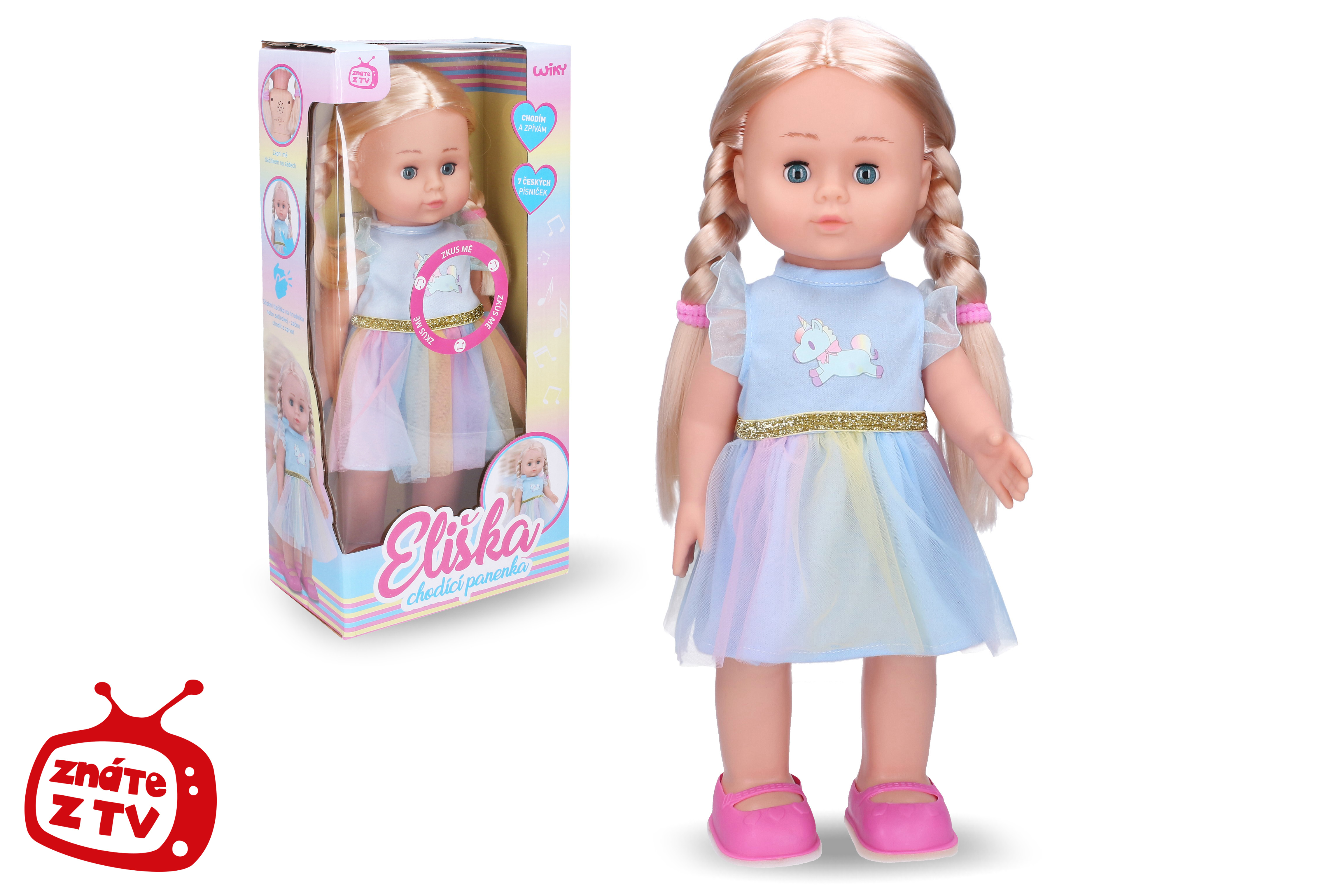 Eliška je chodící panenka, která mooc ráda zpívá! Chceš si s ní zazpívat? Umí 7 lidových písniček. Stačí tlesknout a přidej se!