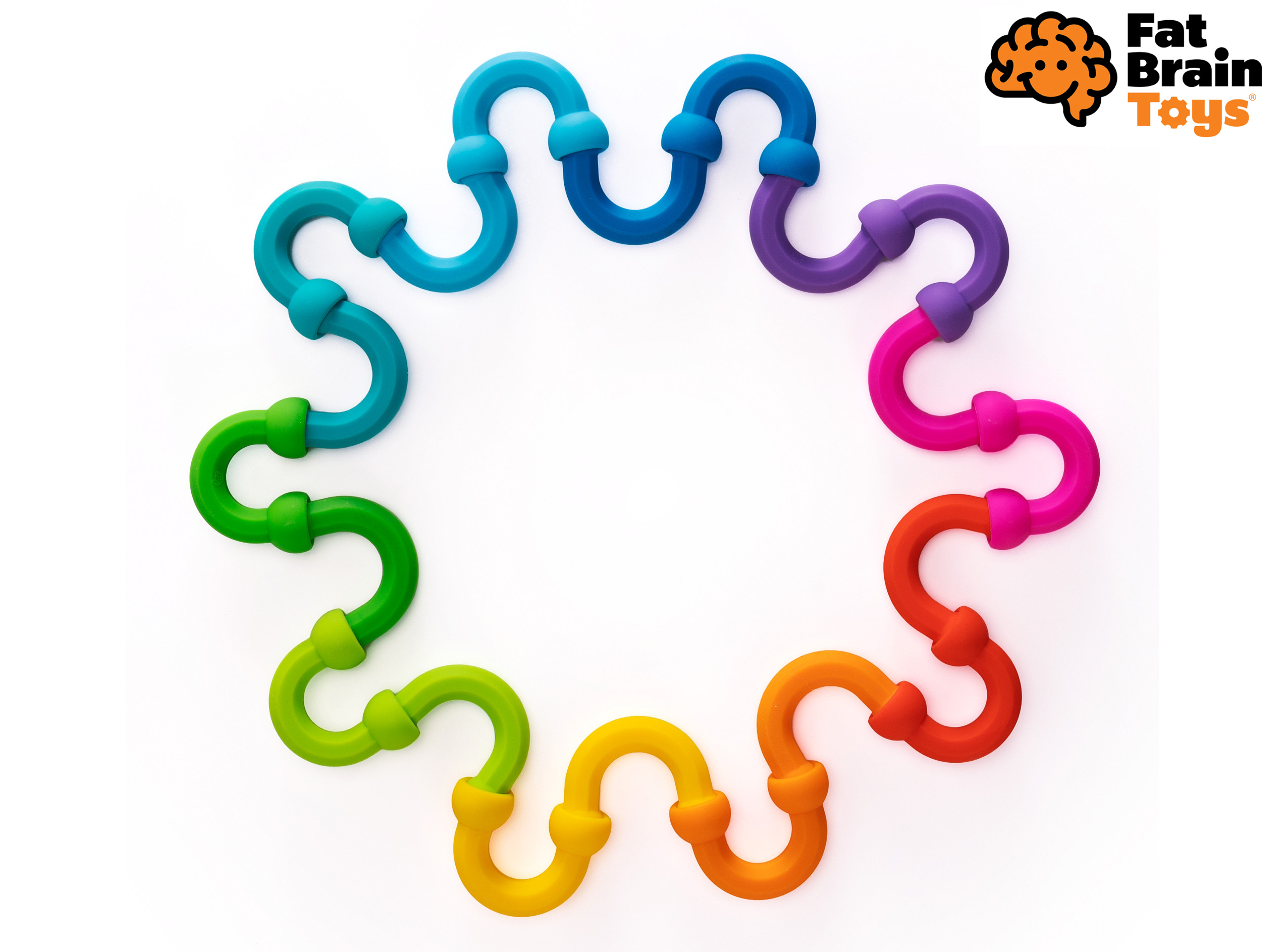 Fat Brain PLIP LINKS silikonové spojovací účka. Obsahuje 20 ks. Je možné je propojovat a skládat různé tvary. Z food grade silikonu. Vhodné pro kousání a hmat.