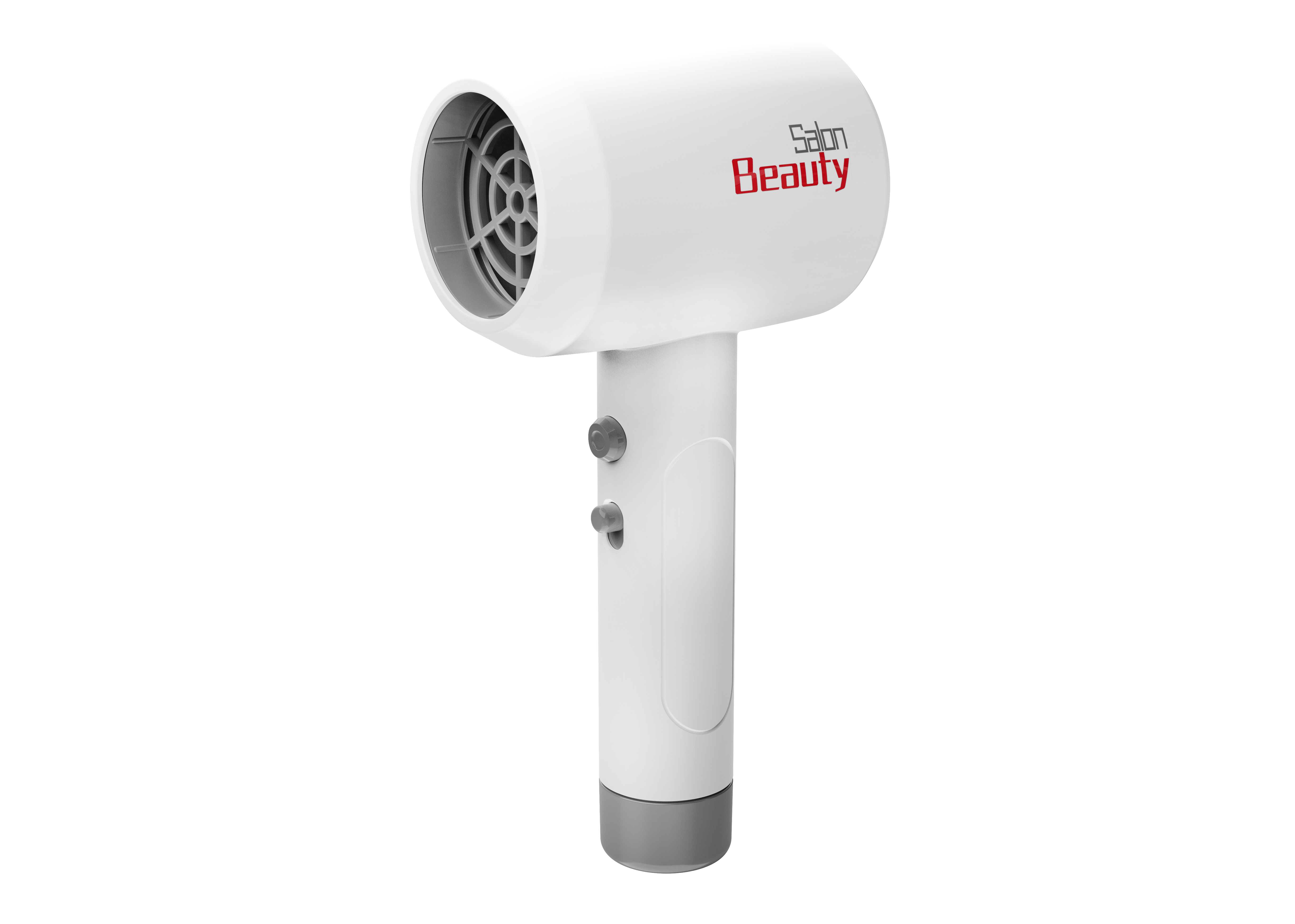 Fén na vlasy. Funkce foukání, dva nástavce, on/off tlačítko a tlačítko bez funkce. 1xAA baterie není součástí. Velikost 18cm.