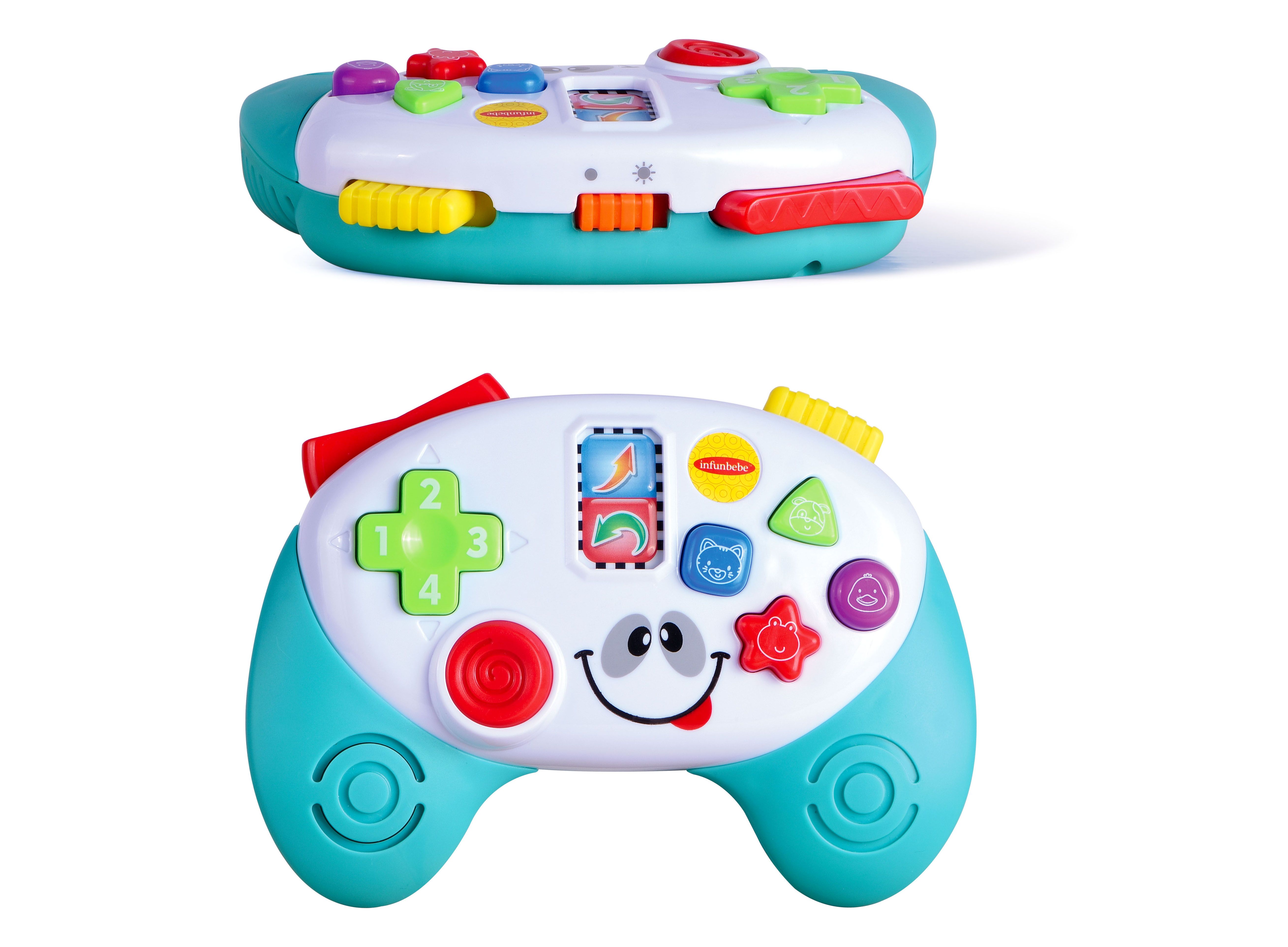 Herní ovladač. Rozměry 14,5x11 cm. Světelné a zvukové efekty. 2xAA baterie součástí. Přepínač ON/OFF na horní straně, přepínač hlasitosti na zadní straně ovladače.