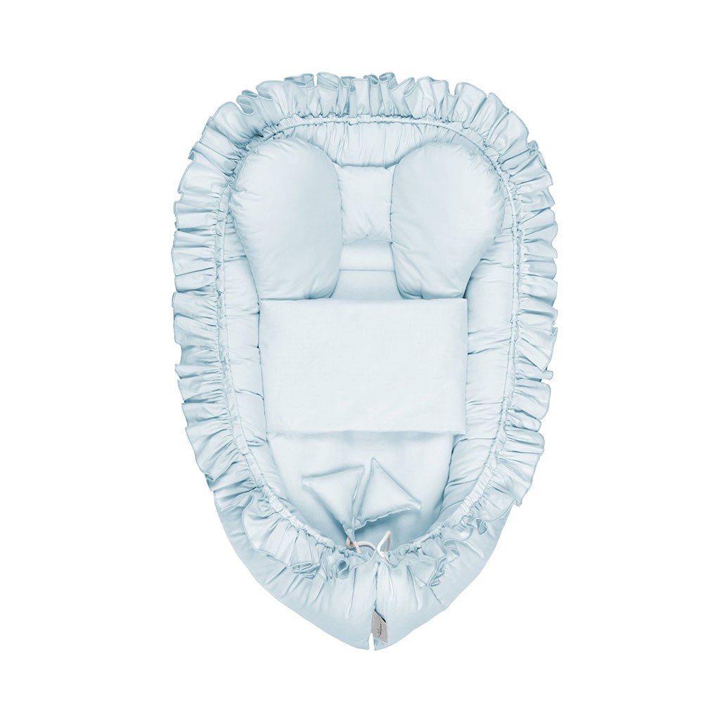 Hnízdo s peřinkou pro miminka Belisima PURE. Navozuje miminkům pocit bezpečí, kopíruje tvar mámina těla a děťátko se tak cítí spokojeně jako u maminky v bříšku. Součástí hnízda je i stabilizační polštářek a peřinka. Miminku se daleko lépe usíná a je klidnější. Hnízdečko je příjemné na dotek a krásně měkkoučké. Složení: 100% bavlna, výplň: 100% polyester. Rozměry: cca 55x75 cm, vnitřní rozměry: cca 35x59 cm. Peřinka: rozměry: 70x50 cm.