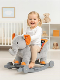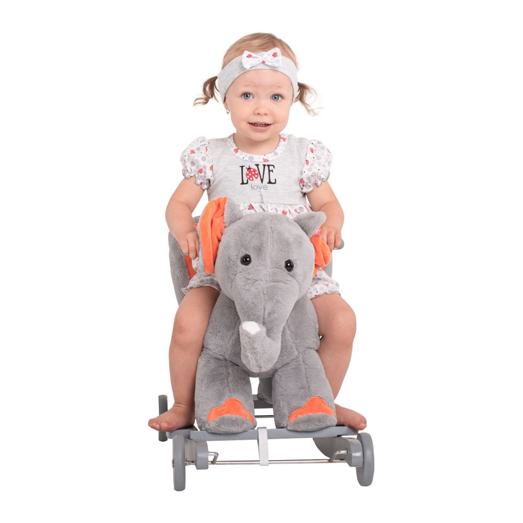 Neobyčejně krásný houpací sloník s kolečky PlayTo byl navržen pro děti, které mají rády dobrodružství. Pohodlné a ergonomicky tvarované sedlo s opěradlem vašemu dítěti poskytne pohodlí a bezpečnost během bezstarostného houpání. Pevné dřevěné lišty a rukojeti pomáhají dítěti udržet rovnováhu. Houpací lišty lze navíc jednoduše odšroubovat. Překlopením jednoduchého mechanismu na lištách vysunete kolečka, čímž ve vteřině změníte houpací hračku v jezdícího sloníka. Celá hračka je vyrobena z hebkého a velmi příjemného na dotyk plyšového materiálu. Po stisknutí ouška sloník zazpívá veselou písničku. Baterie jsou již součástí sloníka. Hračka pomáhá dítěti rozvíjet koordinaci pohybů a podňecuje jeho představivost.