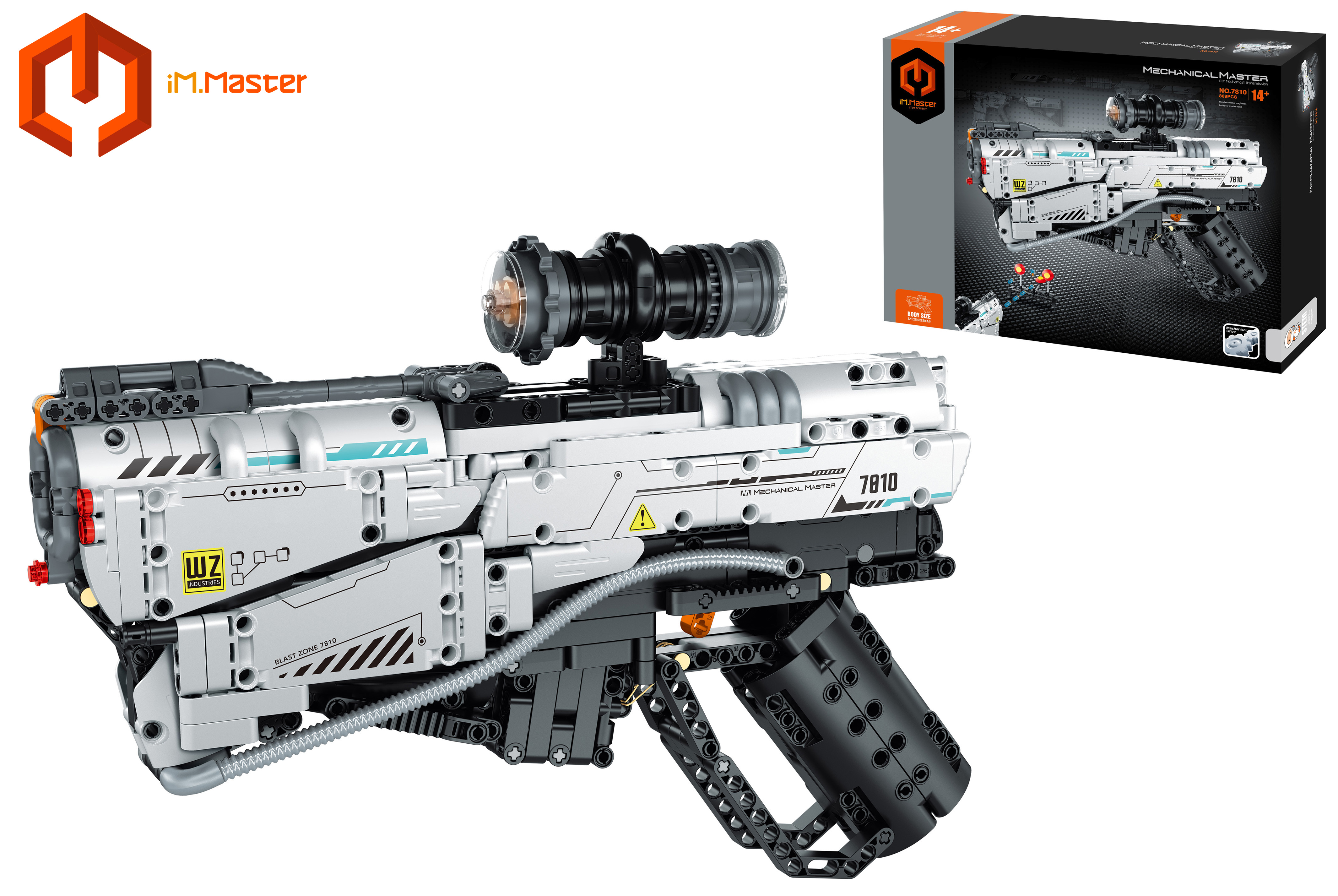 iM.Master Stavebnice pistole Blast Zone 7810. Rozměry 32,5x5,6x22 cm. 869 dílků. Součástí náboje a terč.