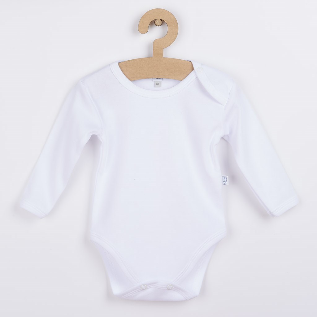 Klasické bílé bavlněné kojenecké body Bobas Fashion s dlouhým rukávem. Bílé body má zapínáni na cvočky na ramínku a mezi nožičkami, což usnadňuje oblékání a přebalování. Velmi příjemný a kvalitní materiál. Ideální pro miminka. Rozměry: obvod kolem hrudníku cca 40 cm, délka od ramínek cca 34, délka rukávu cca 20 cm. Složení: 100% bavlna.