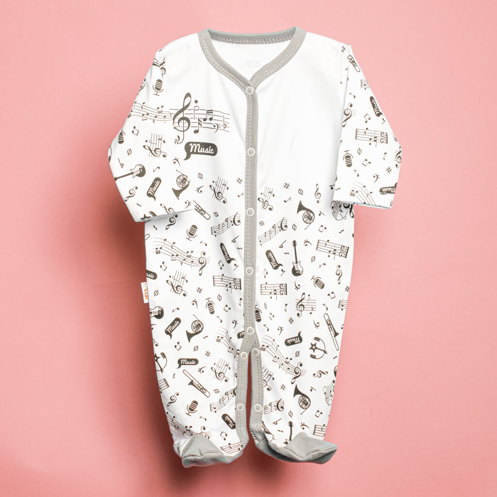 Originální, hravý a zároveň veselý bavlněný kojenecký overal New Baby Music pro miminka. Dětský overálek má rukávky a spodní část celopotištěnou notičkami a hudebními nástroji. Vrchní část je zdobena roztomilým obrázkem notiček a nápisem Music. Zapínání na cvočky po celé délce a mezi nožičkami usnadní oblékání a přebalování. Díky nápaditému designu bude děťátko v overálku velmi originální. Klademe důraz na kvalitu a proto se díky příjemnému, měkkému a kvalitnímu materiálu, bude Vaše miminko cítit velmi příjemně. Náš overálek je vhodný pro kluky i holčičky. Složení: 100% bavlna. Rozměry: obvod kolem hrudníku cca 46 cm, celková délka cca 45 cm, délka od rozkroku cca 15 cm, délka rukávú cca 17 cm.