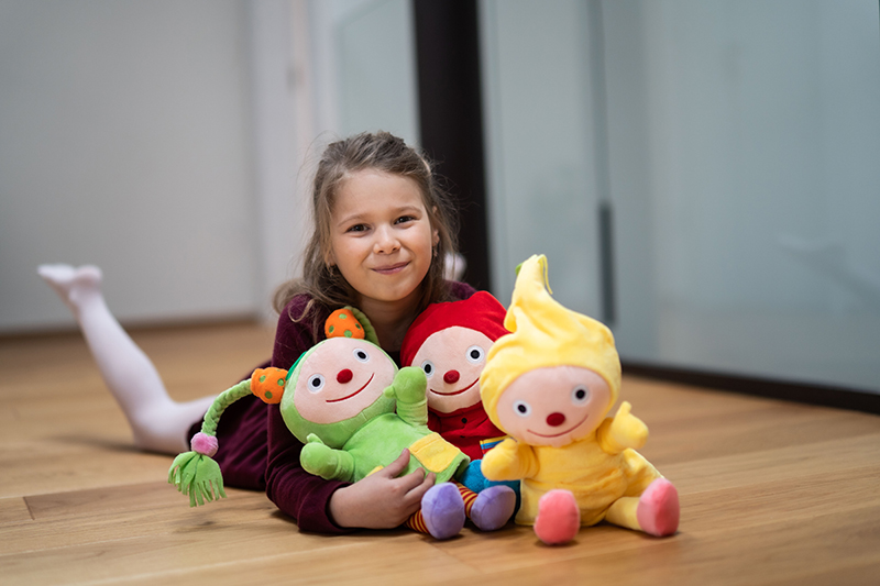 Plyšová postavička z oblíbeného dětského pořadu Kouzelná školka vysílaného Českou televizí. Malá zelená skřítčí slečna pocházející ze země Fanfárie. Z kvalitní a hebké plyše. Velikost 30 cm. Vhodná pro děti od narození.