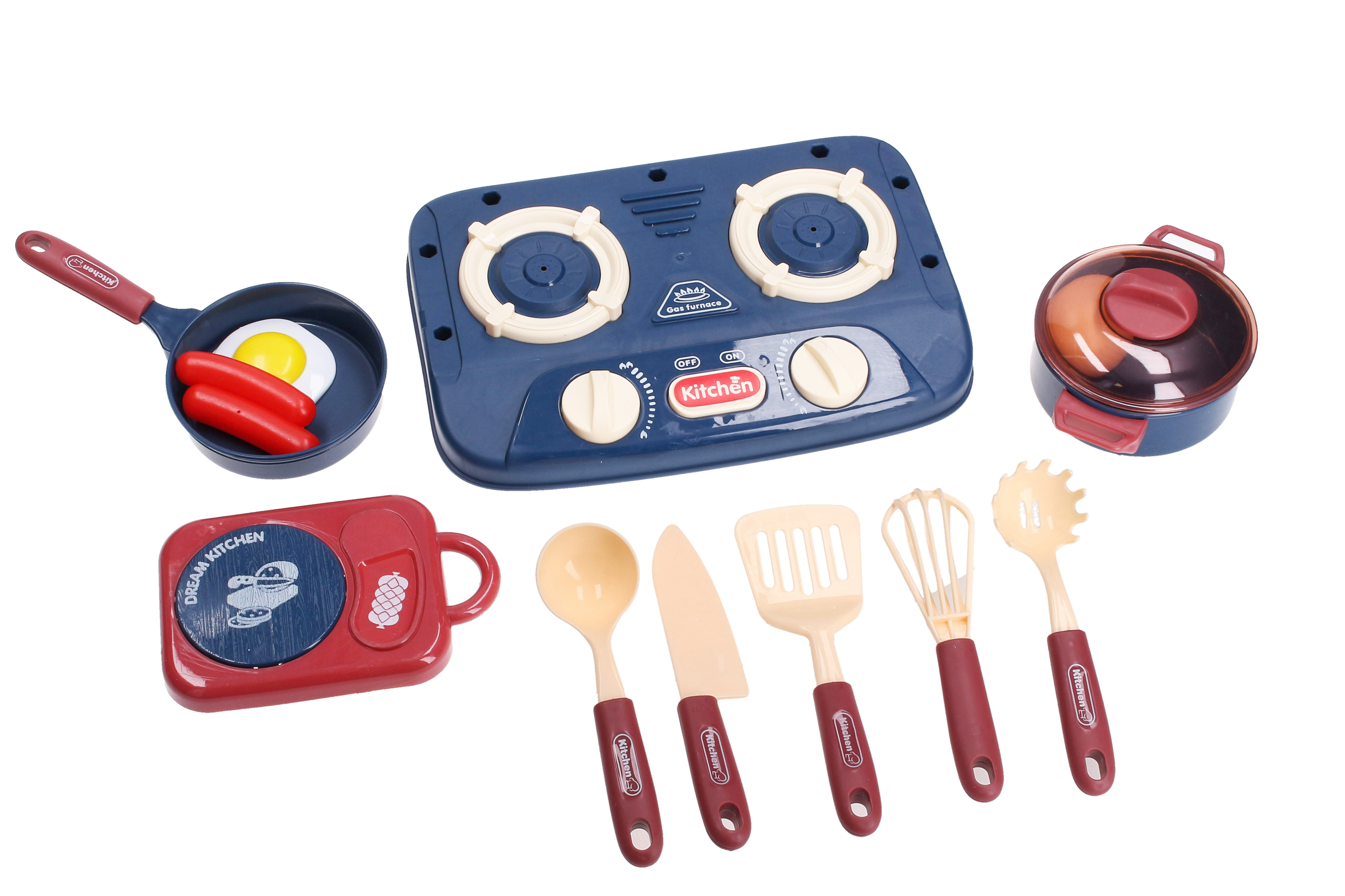 Kuchyňský set. Součástí vařič, nádobí a jídlo. Není na baterie, žádné efekty.