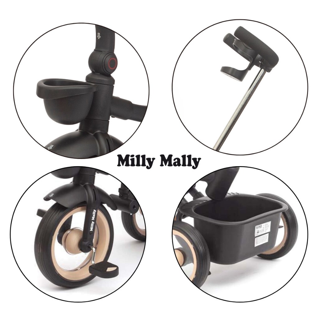 Twinkle je vybavena nastavitelnou rukojetí, funkcí volnoběhu, brzdou, bezpečnostními pásy s chrániči a pohodlným třípolohovým opěradlem a zaručuje úplnou kontrolu a pohodlí pro dítě i rodiče. Její lehký, ale odolný ocelový rám, kola s pěnovou výplní a kuličkovými ložisky, skládací konstrukce a praktické prvky, jako je síťovaná stříška, LED světlo, držák na nápoje a dva úložné boxy, z ní činí perfektní volbu pro každou příležitost – ve městě, na procházce nebo na výletě. Po odstranění rukojeti, kolejnic a stříšky lze Twinkle používat jako klasickou tříkolku.