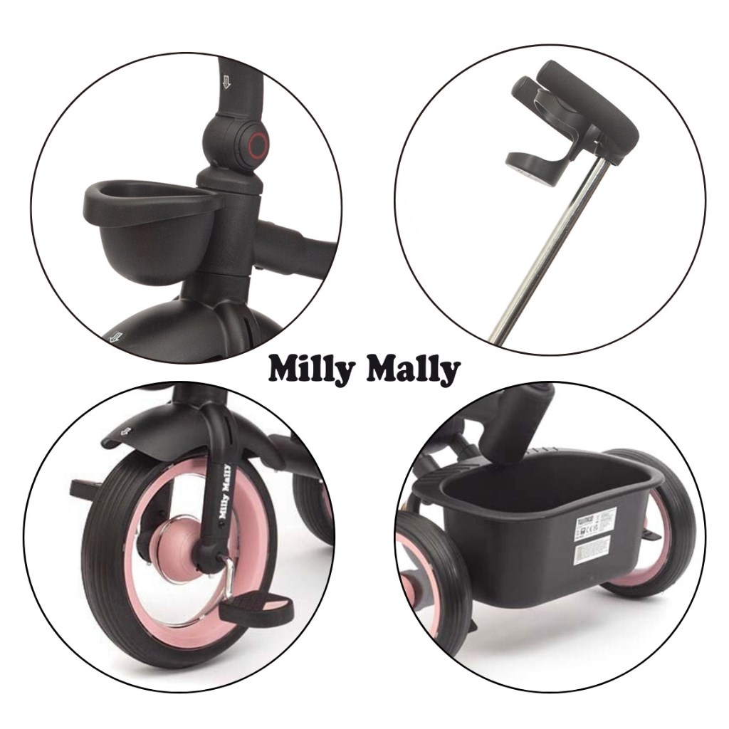 Twinkle je vybavena nastavitelnou rukojetí, funkcí volnoběhu, brzdou, bezpečnostními pásy s chrániči a pohodlným třípolohovým opěradlem a zaručuje úplnou kontrolu a pohodlí pro dítě i rodiče. Její lehký, ale odolný ocelový rám, kola s pěnovou výplní a kuličkovými ložisky, skládací konstrukce a praktické prvky, jako je síťovaná stříška, LED světlo, držák na nápoje a dva úložné boxy, z ní činí perfektní volbu pro každou příležitost – ve městě, na procházce nebo na výletě. Po odstranění rukojeti, kolejnic a stříšky lze Twinkle používat jako klasickou tříkolku.