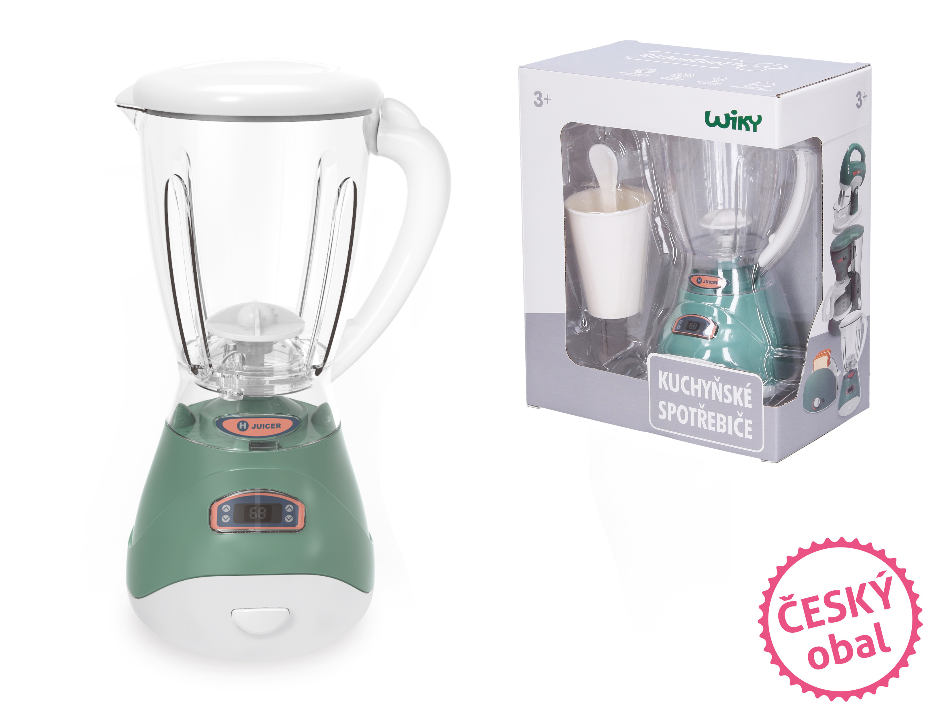 Mixér s efekty. Velikost 8x5x15cm. Baterie 2xAA, nejsou součástí. Vydává světelné a zvukové efekty.