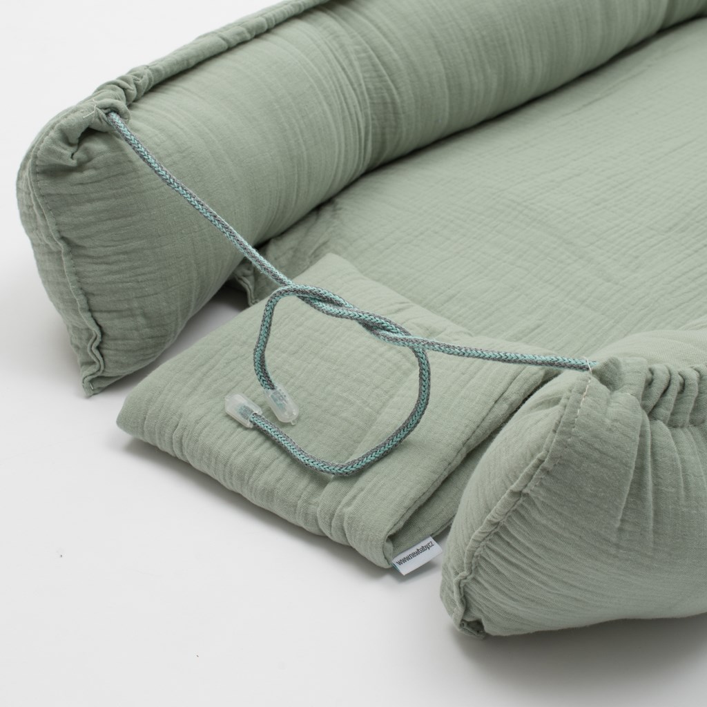 Hnízdečko z mušelínu New Baby je vyrobeno z nejkvalitnější bavlněné příze. Umožňuje uložení miminka v pohodlné poloze a hlavně může být miminko v kokonu umístěno neustále v blízkosti maminky. Při cestování lze hnízdečko vzít s sebou, aby miminko, připoutané k vůni domova a svého místa, mohlo bezstarostně spát na jiném místě. Hnízdečko lze umístit do postýlky, na pohovku, na zem nebo do kočárku. Dítě v něm může spát, odpočívat nebo si hrát. Hnízdečko bude skvělým pomocníkem ve vaší domácnosti. Vhodné pro děti od 0 do 12 měsíců.