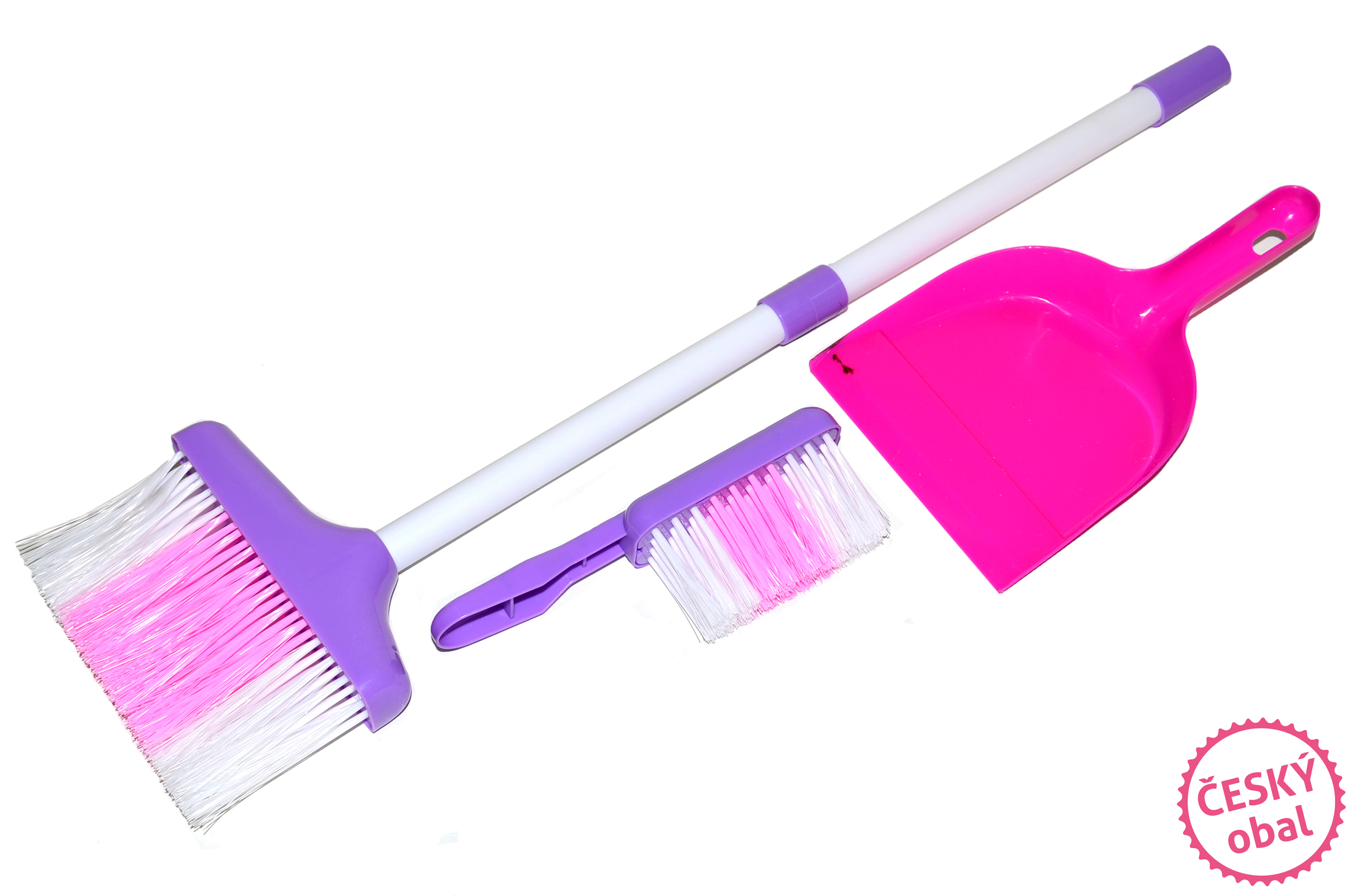 Plastová dětská sada na úklid. Obsahuje lopatku, smetáček a smeták.