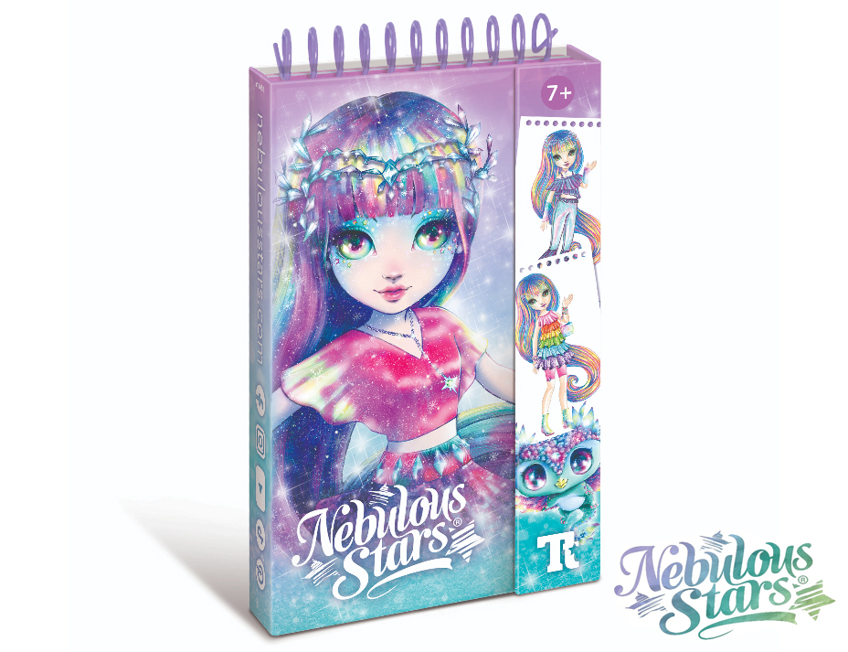 Nebulous Starts Návrhářský set na cesty . Rozměry 19,5x11x3 cm. Malý formát vhodný na cesty. Obsahuje 20 stránek s náčrtkem postavy, 2 stránky se šablonami pro oblečení (28 šablon). 6 archů se samolepkami (100 samolepek), 10 barevných pastelek, obrázkový návod. Display box 8 ks. Blok s magnetickým uzavíráním.