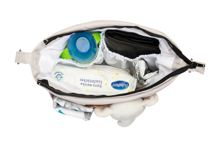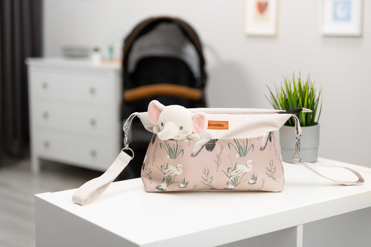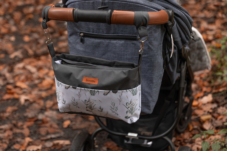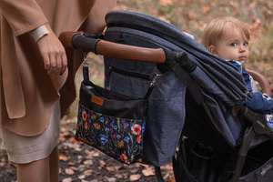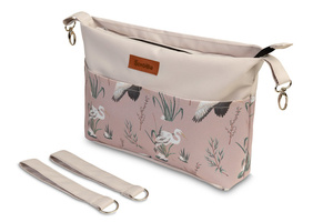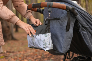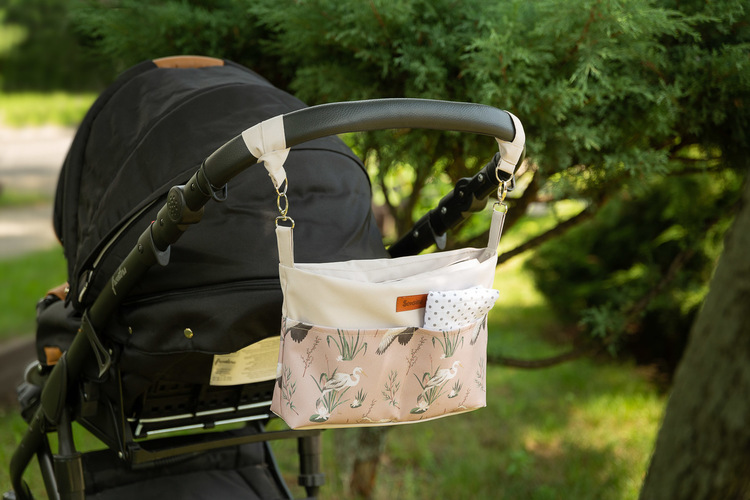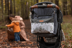 Organizér na kočárek je menší alternativou tašek, do které se vejdou všechny vaše nezbytnosti. Je ideální na procházky, nákupy nebo výlety. Na přední straně má dvě přihrádky, zatímco uvnitř jsou dvě velké kapsy zakončené elastickým páskem. Celá se uzavírá na zip. Organizér je ušitý z robustní, voděodolné tkaniny. Dodává se včetně úchytů pro připevnění organizéru k rámu kočárku.