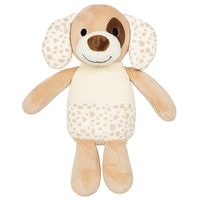 Pejsek o rozměrech 26 × 8 × 16 cm se skvěle vejde do malých ručiček, což ho činí ideálním společníkem na mazlení, nošení a objevování světa. Jeho přívětivý vzhled, jemné barvy a měkká struktura stimulují smysly dítěte a podporují jeho emoční a smyslový vývoj.