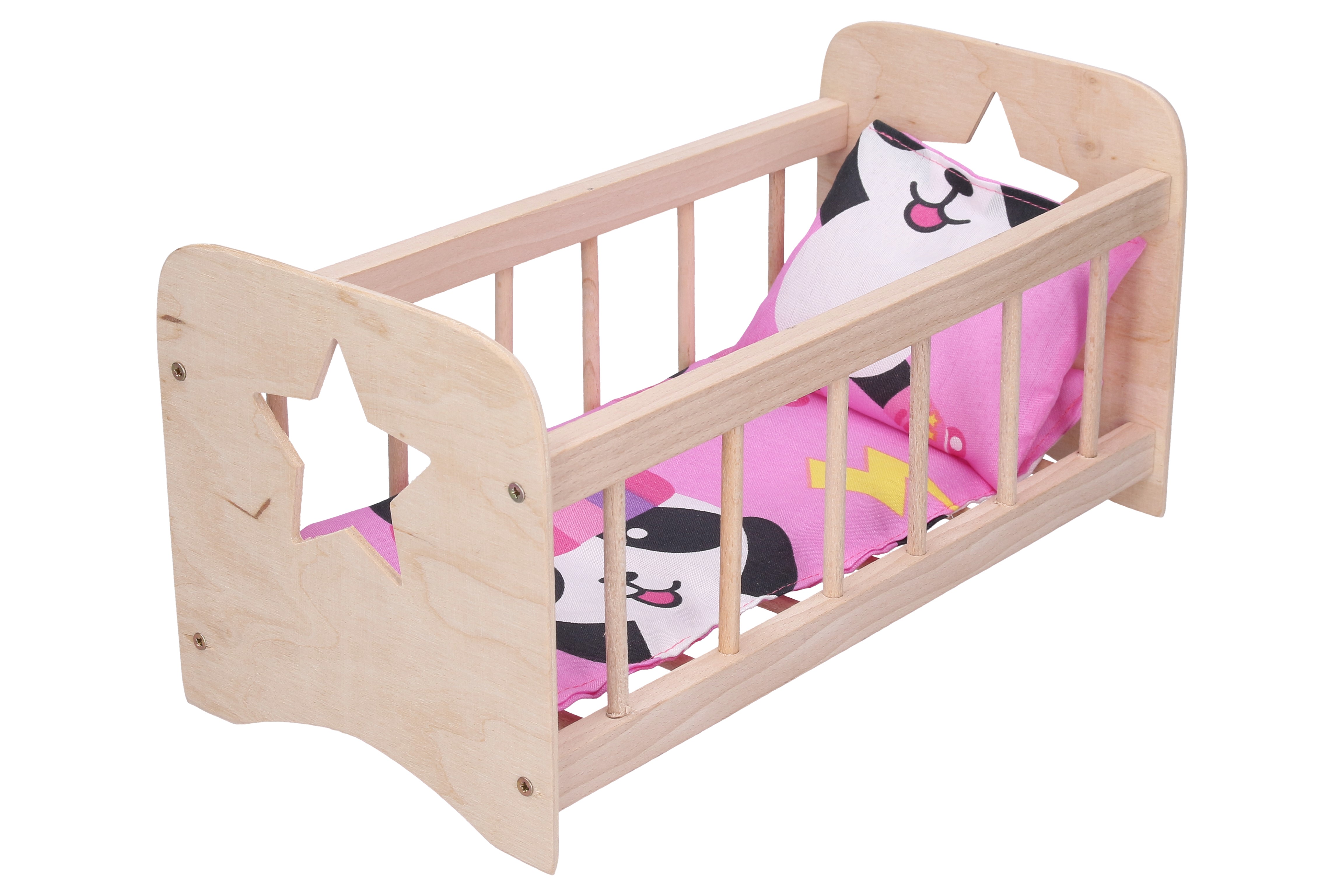 Dřevěná postýlka je ideálním pomocníkem každé malé maminky, stačí přidat nadýchané peřinky a miminko uložit ke spánku.