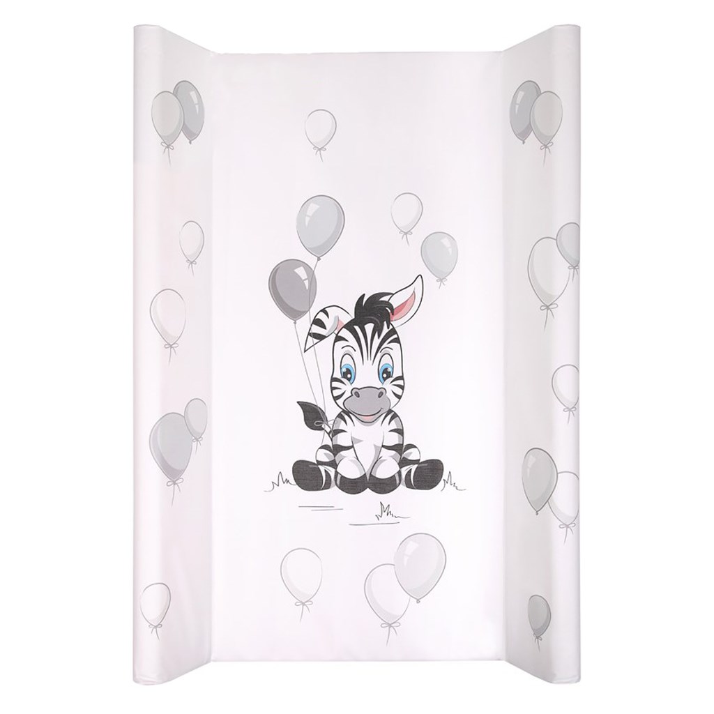 Praktický tvarovaný přebalovací nástavec New Baby z nepromokavého, plastového materiálu s obrázkem zebry v příjemných pastelových barvách. Nástavec je vyplněn polyesterem a má vyvýšené boční strany. Nástavec má spodní tvrdou desku, lze ho přišroubovat na postýlku nebo umístit na přebalovací stojan. Je vyroben z nejkvalitnější certifikované fólie, která neobsahuje žádné škodlivé látky a je citlivá k nejjemnější dětské pokožce. Rozměr: cca 50x80 cm, tloušťka cca 2,5 cm, výška hran 8,5 cm.