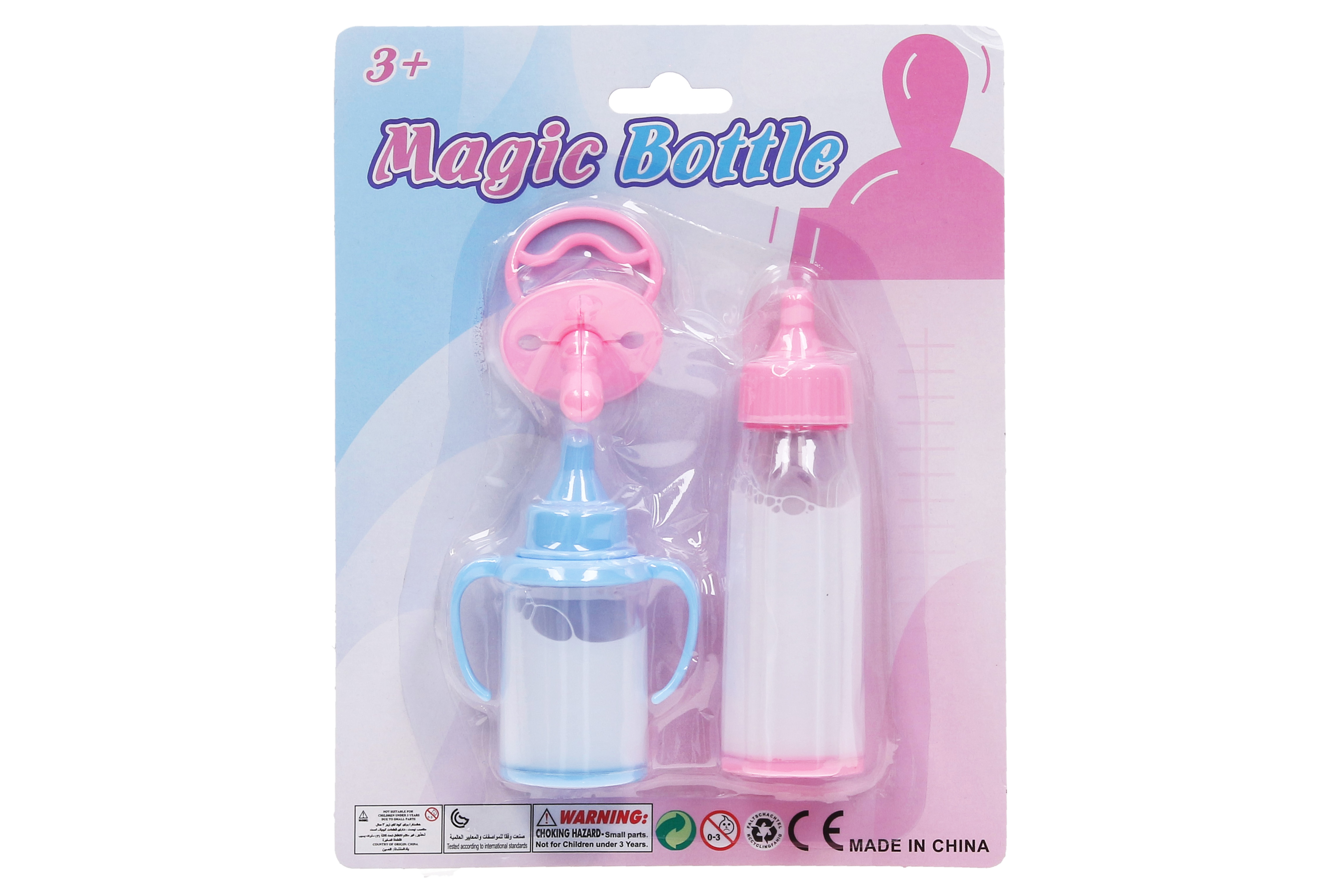 Příslušenství pro miminko. Velikost 12cm. Obsahuje větší a menší lahvičku a dudlík.