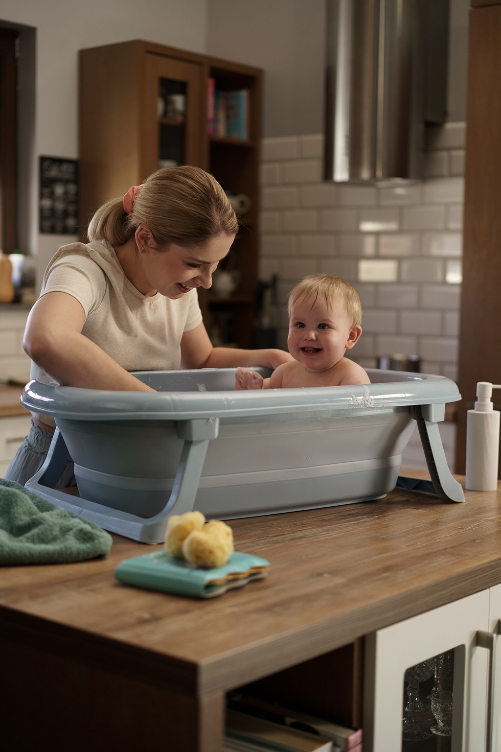 Vanička je vybavena výpustním ventilem a páskovým teploměrem, což výrazně zvyšuje komfort a bezpečnost při každodenním používání. Dá jednoduše složit na výšku pouhých 10 cm, přičemž plastové nožičky se sklopí přímo pod vaničku – díky čemuž zabírá minimum místa a je ideální pro skladování i v menších prostorách.