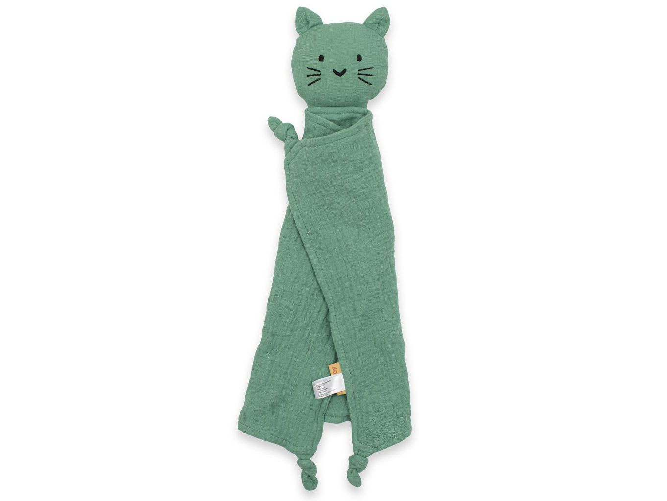 Usínáček mušelínový New Baby Cat mint. 100% organická bavlna. Materiál: 100% polyester. Rozměry: 30x30 cm.